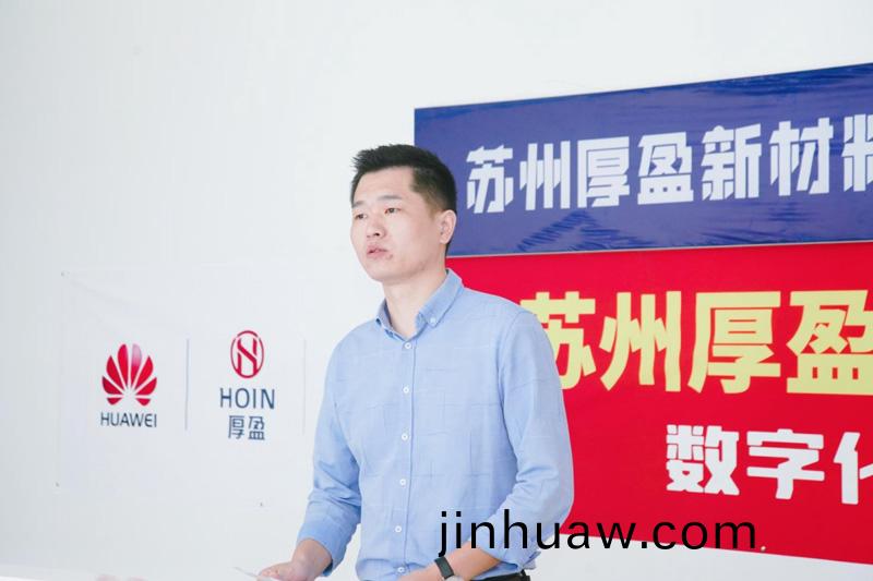 10:00,籤約儀式正式開始。厚盈新材料生産陳總、華爲吳江賦能中心王總及新覈雲輭件項(xiang)目經理(li)張經理進行籤約儀式,聚泰新材料總經(jing)理徐總見證籤約儀式。